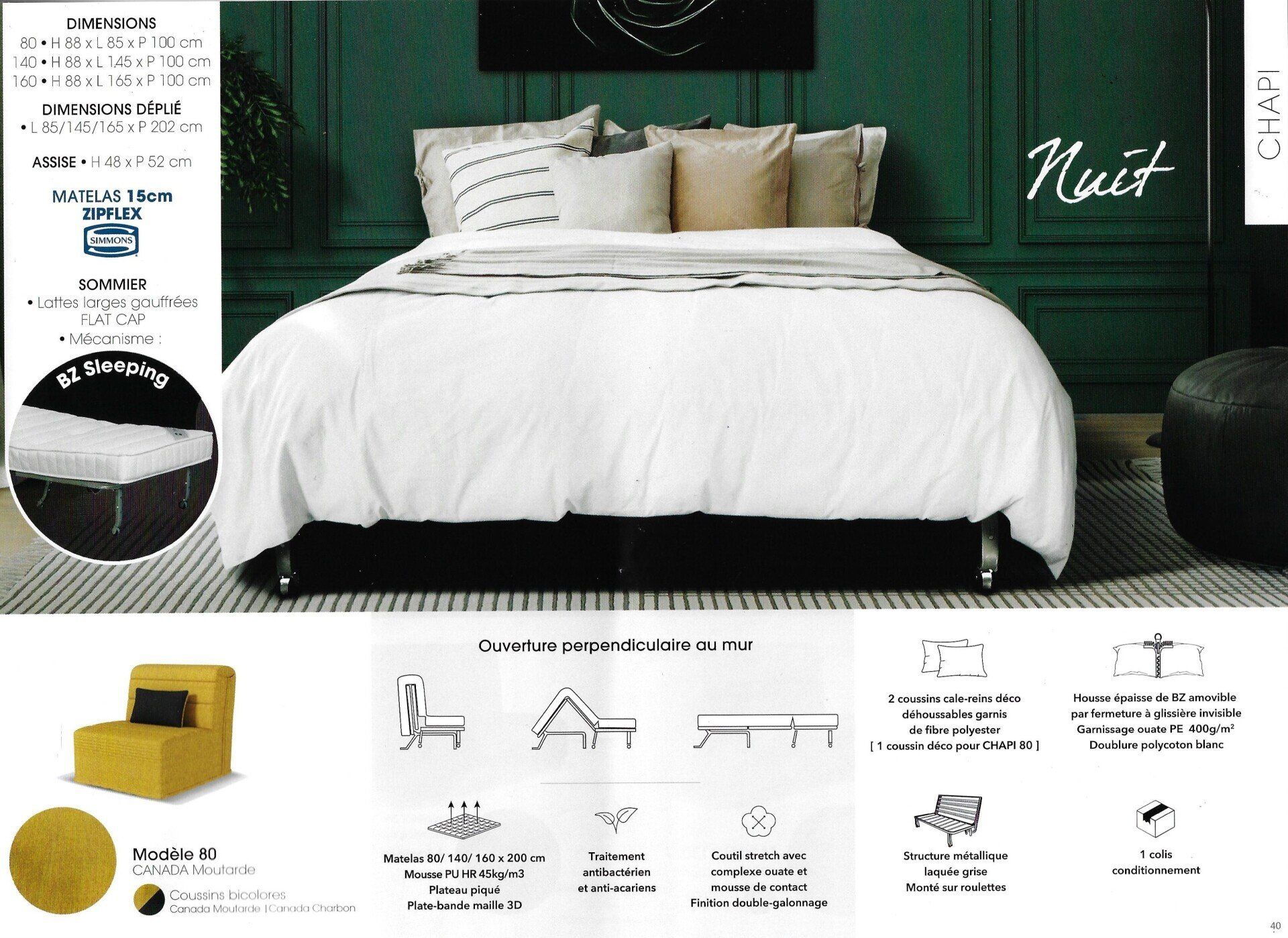 avec 3 choix de qualité de mousse: souple Bultex 43 kg/m3, équilibré Bioflex 55 kg/m3 ou ferme 55 kg/m3 avec ressorts ensachés, la hauteur d'assise,