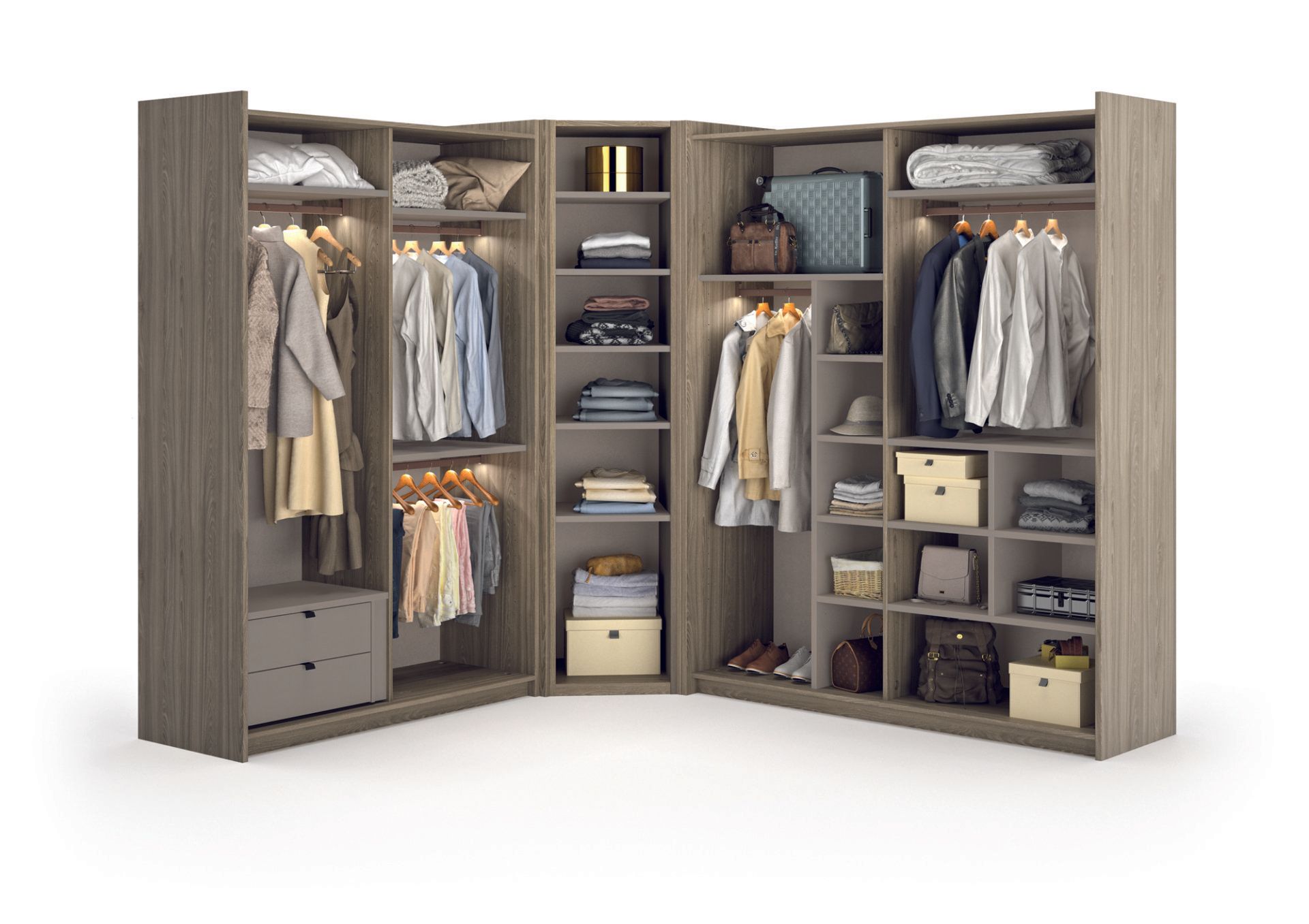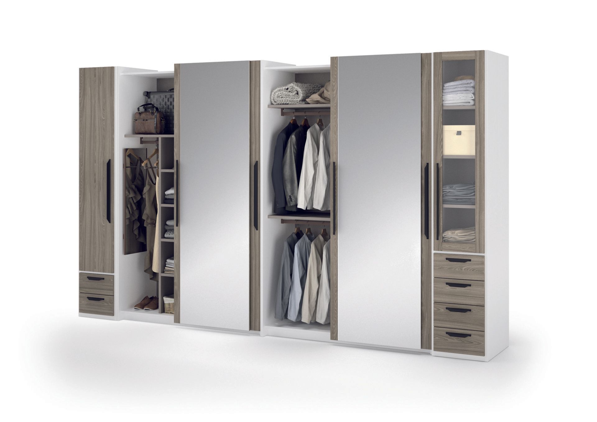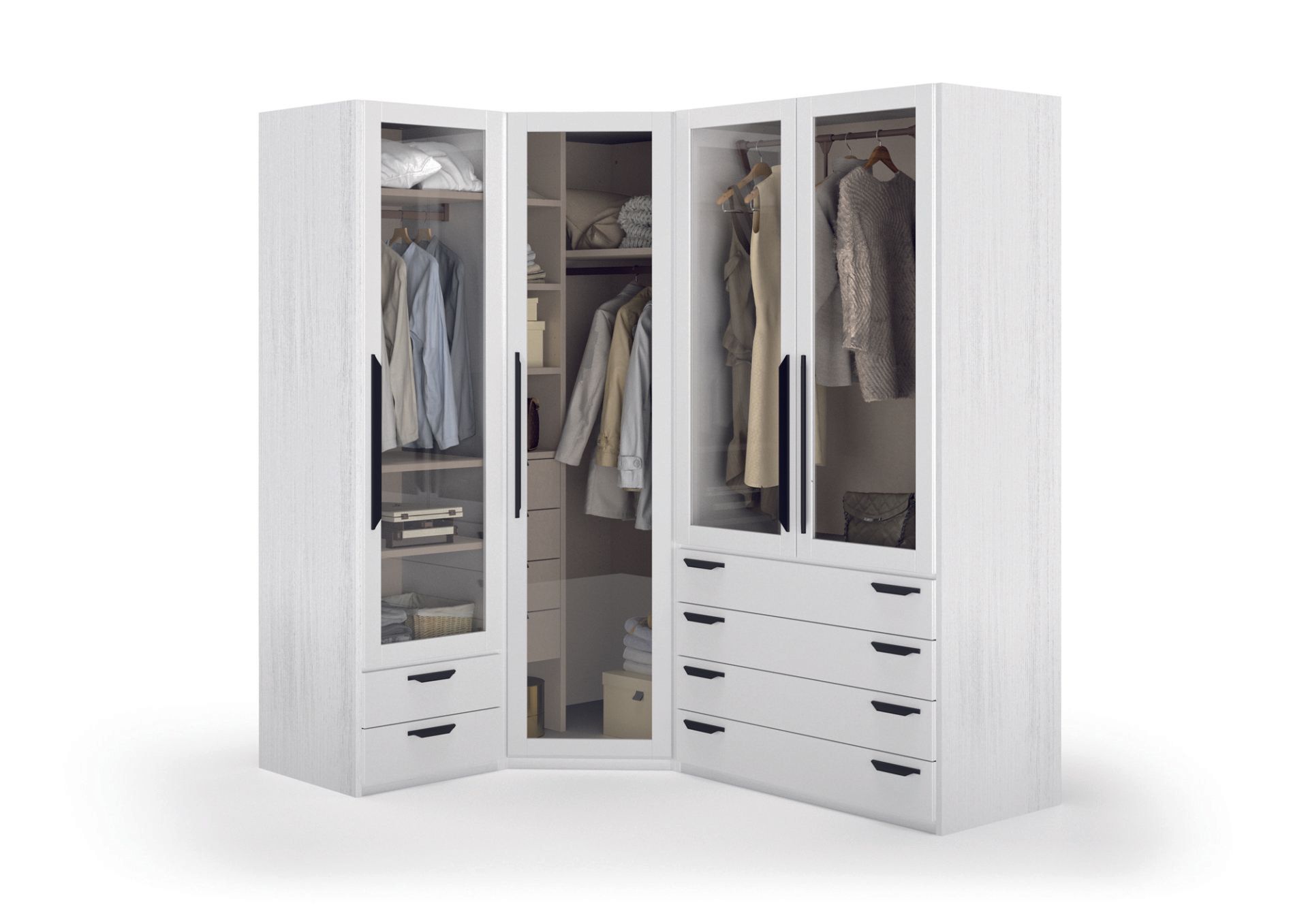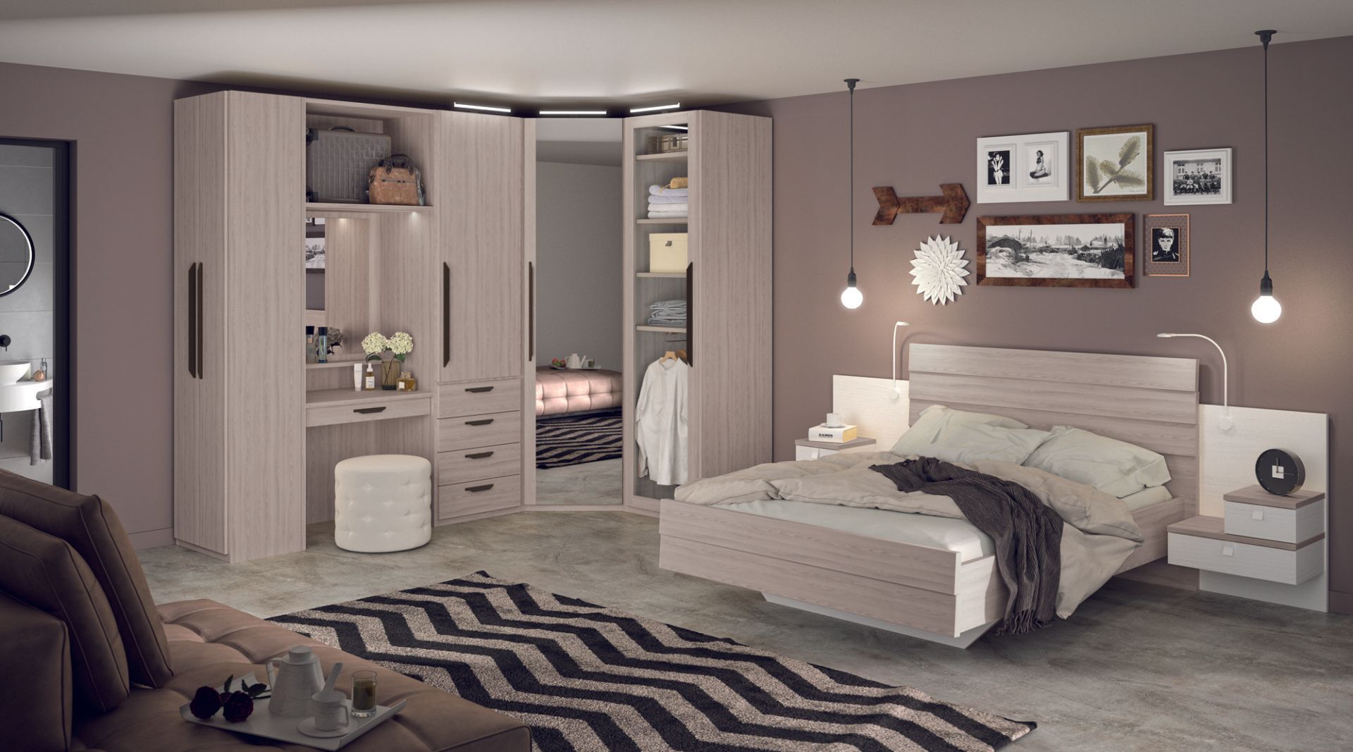 Portes battantes, tiroirs, module d'angle, meuble de liaison, meuble à chaussures, coiffeuse, bureau et divers accessoires, facilitant l'organisation et le rangement.